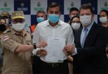 Em solenidade de assinatura do Termo de Cooperação Técnica entre a Secretaria de Estado de Saúde (SES-AM) e o Corpo de Bombeiros Militar do...