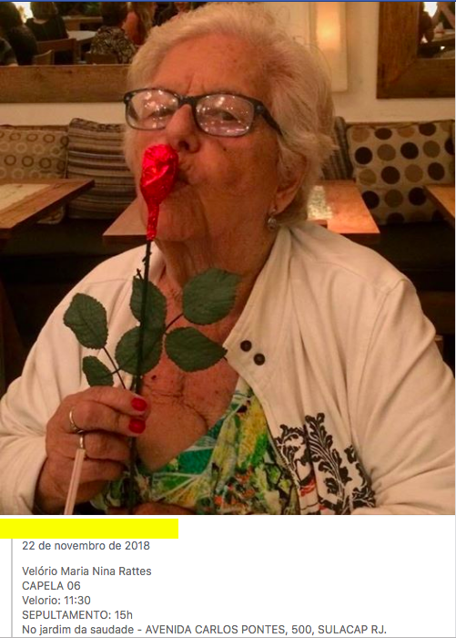 Como legenda da foto de uma senhora idosa vestindo verde e amarelo, enrolada em uma bandeira do Brasil, usando um andador, ele — ou Carlos — escreveu um “apelo”.