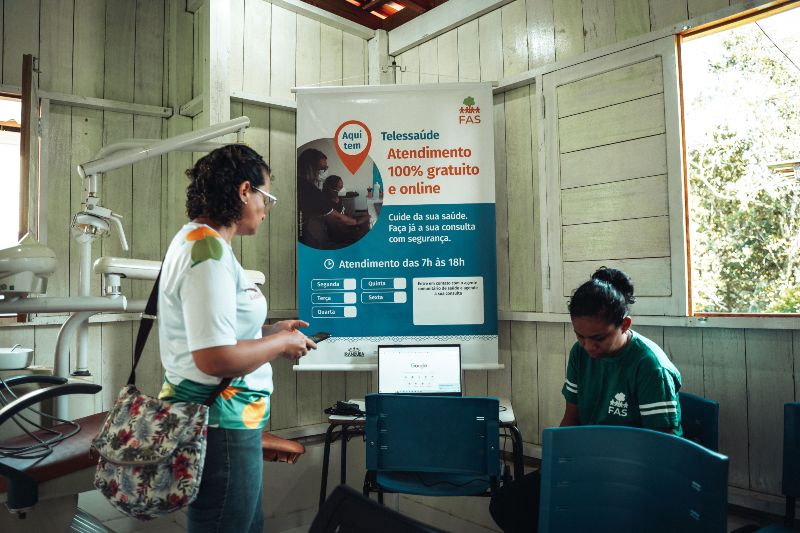 Em 2022, os polos de teleatendimento no interior da Amazônia atenderam 2.373 moradores de comunidades remotas, além de capacitar 1.216 profissionais de saúde que ali atuam e comunitários. Esse trabalho é realizado com a ajuda da tecnologia, por meio de 97 pontos de conectividade instalados pela FAS e parceiros em 22 municípios, 22 Unidades de Conservação (UCs) e 18 Terras Indígenas (TIs) na Amazônia. Os locais são equipados com estrutura de atendimento e acesso à internet para consultas online, e tem à disposição as especialidades de medicina, enfermagem e psicologia.